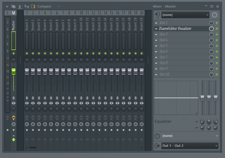 FL Studioを起動し、任意のトラックにエフェクトとしてZGameEditor Visualizerを挿す。