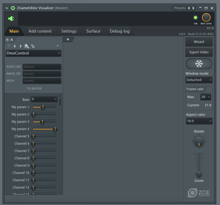 付属プラグインであるZGameEditor Visualizerは映像での演出ができ、スペアナ付きの動画の作成によく使われるが、実はDMX512で照明機器の制御までできてしまう。