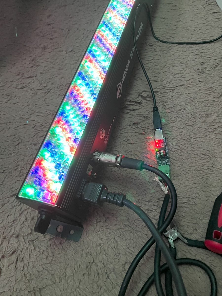 今回はたまたま手元にあったマイクケーブルとだいぶ前にアリエクで200円で買った変換基板でUSB-DMX512アダプタを自作した。